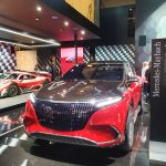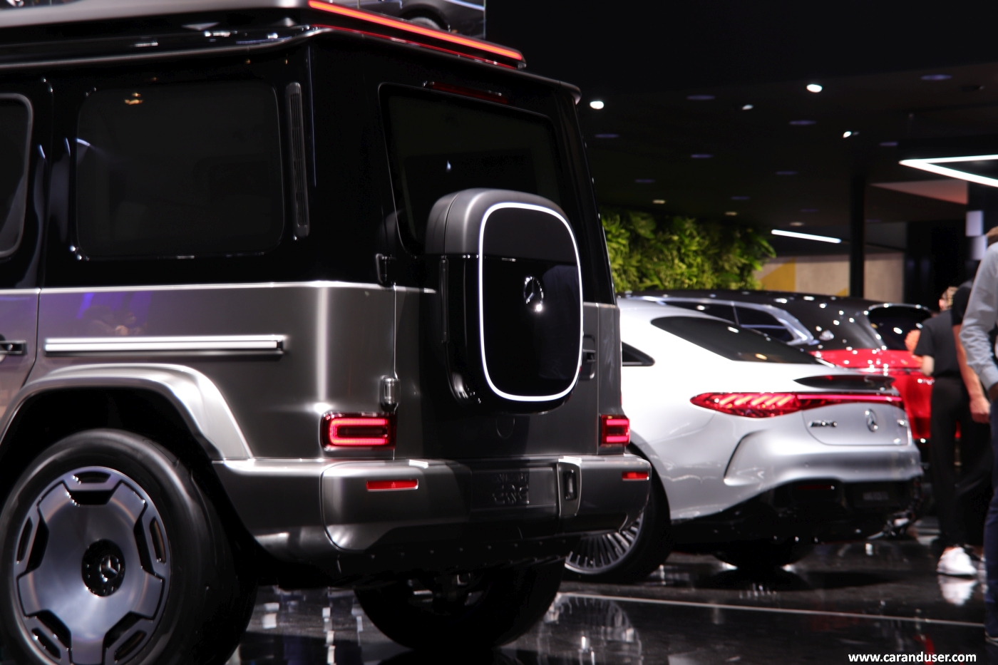 Veliki konkurent domače znamke je z veliko nogo zastavil svoj razstavni prostor, da konkurentom nebi dalo miru. Največ so k posebnosti prispevale mnoge premierno predstavljene umetnine, kot so električna limuzina EQE, prvi štromarski AMG (EQS), terenski EQG, kompakten družinski sedemsedežni SUV EQB, koncept EQT, nedavno razkrit razred C Allterrain, neslišni Maybach in seveda zvezdnik AMG Project ONE z motorjem bolida Formule 1.
