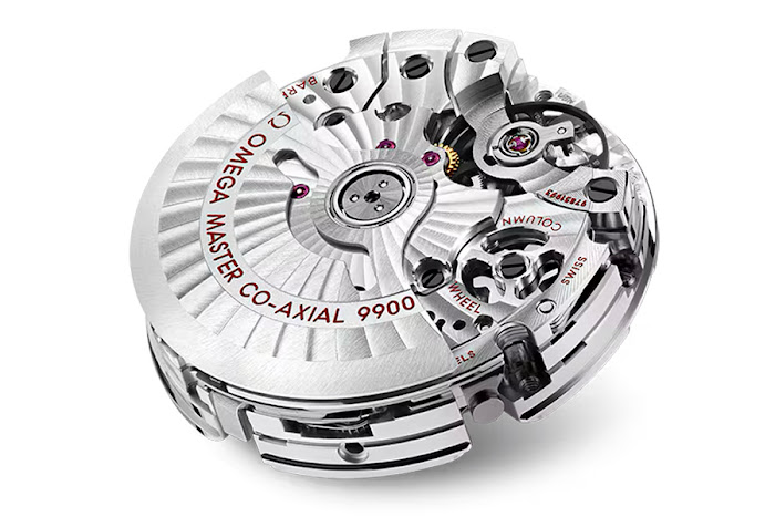Za masivno hrbtno stranjo ohišja, na kateri je odtisnjen originalni medaljon morskega konjička, se nahaja avtomatski mehanizem Calibre 9900, ki deluje s frekvenco 4 Hz (28.800 alternanc na uro). Ta kronografski mehanizem s stebričnim kolesom in koaksialnim pobegom je certificiran ”mojstrski” kronometer, ki ga je odobril METAS, in je odporen na magnetna polja do 15.000 gaussov. Zaradi dveh zaporedno nameščenih sodov ima 60-urno rezervo energije navitja.