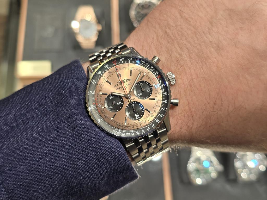 O renomeju blagovne znamke ni treba posebej razglabljati. Njihova kronografska zgodba sega v davno leto 1915, ko so na zapestje poveznili prvo uro s funkcijo kronografa. Kasneje so še patentirali, za današnja merila, vsakodnevno funkcijo kronografa z dvema potiskačema – start in stop. Ljubitelji filmov zagotovo pomite Johna Travolto, ki je nosil ikoničnega Navitimerja. Prepoznavno uro zavoljo svoje lunete, ki služi kot nekakšen vsestranski kalkulator.