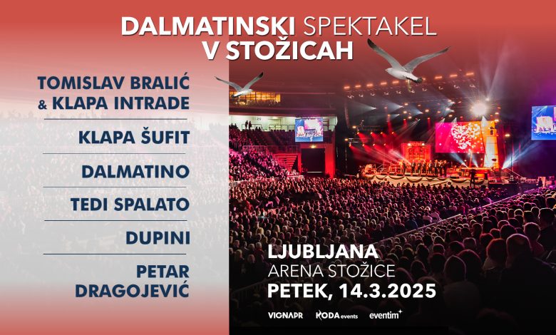 14. marca 2025, bo ob 20. uri na enem mestu zbran vrh dalmatinske glasbene scene, ki bo poskrbel za večer, poln emocij, tradicije in nepozabne glasbene izkušnje. Na odru bodo zažareli največji glasbeni mojstri dalmatinskih melodij: Tomislav Bralić & klapa Intrade, klapa Šufit, Dalmatino, Tedi Spalato, Dupini ter Petar Dragojević. Dalmatinski spektakel v Stožicah obljublja večer, poln emocij, tradicije in pristnega dalmatinskega vzdušja. Prodaja vstopnic se je že začela na vseh pooblaščenih prodajnih mestih Eventima po Sloveniji.