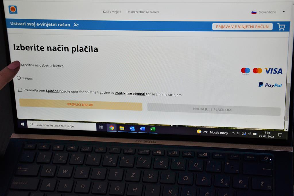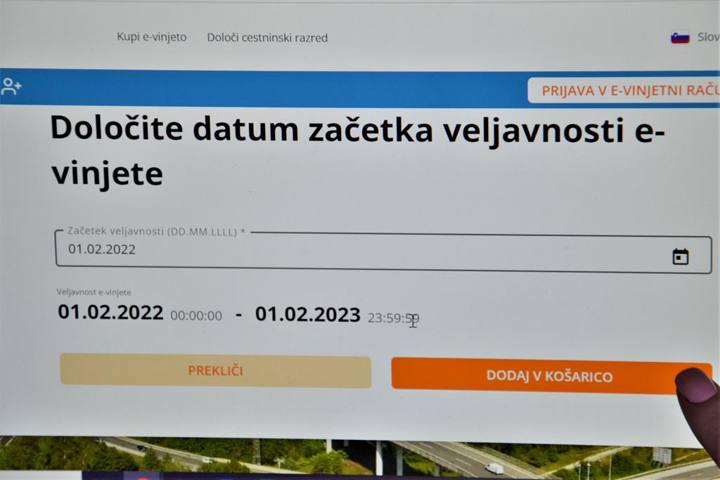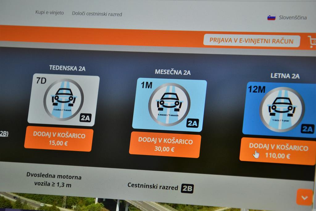 Prikaz postopka nakupa e-vinjete za slovenske avtoceste.