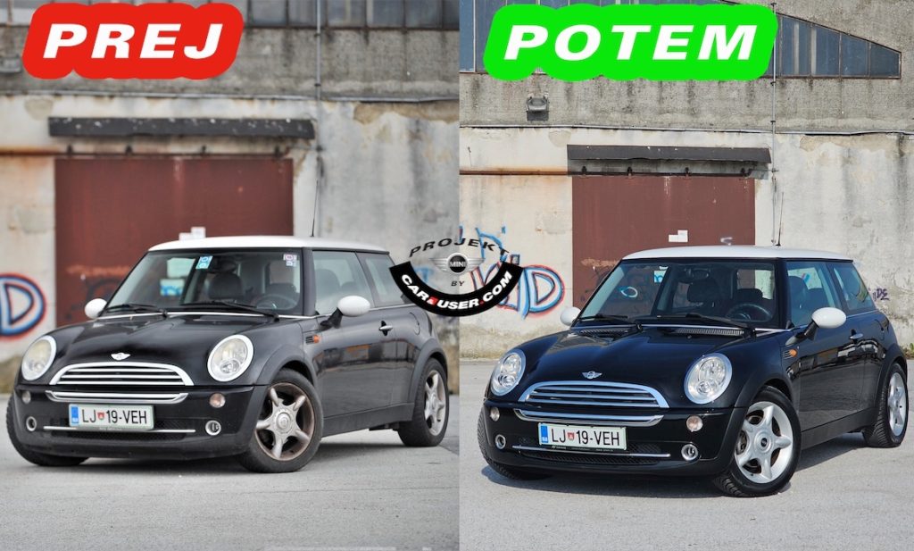 Največji učinek je prinesel car detajling, po katerem je Mini dobesedno zasijal. Do potankosti fino čiščenje s poliranjem laka in sprednjih svetil, je dodobra osvežilo izgled legende ”italijanskih ropov” ter ”britanskih serij”. Kot češnja na torti so bile še nove preproge, medtem ko ni manjkala še finalna preverga delovanja inštalacije ter vzpostavitev ”ferštekarije”.