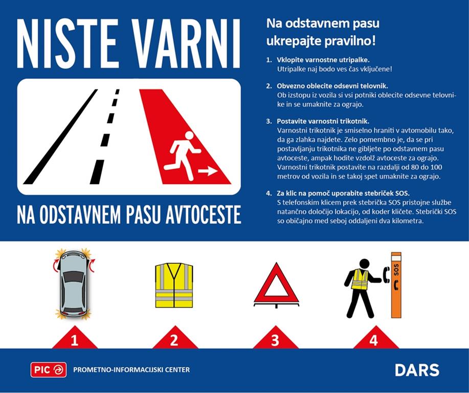 Ukrepajte po spodnjih nasvetih, če se znajdete na odstavnem pasu.