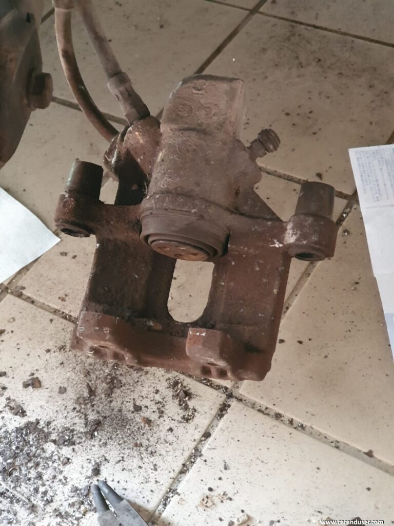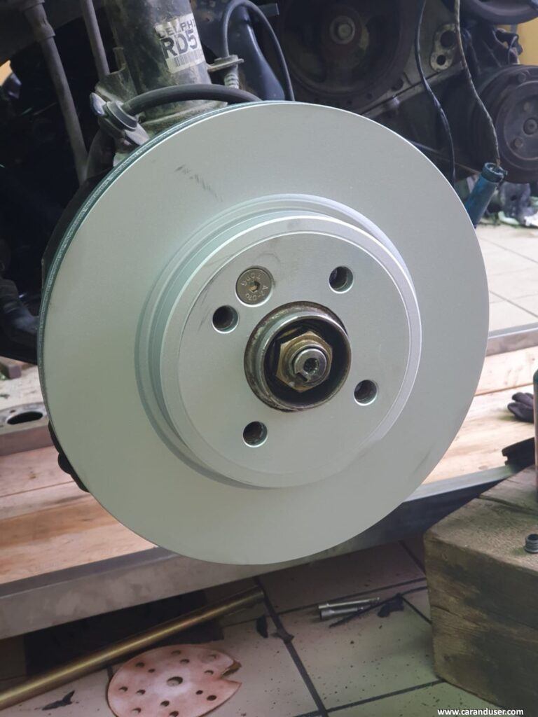 Kot prvo smo se lotili izboljšave zavornega sistema, saj je varnost vsekakor na prvem mestu. Zavorni diski in zavorne obloge (ploščice) so bili precej izrabljeni, zato je bila zamenjava več kot dobrodošla. Opravilo je najlažje izvesti z uporabo avtomobilske dvigalke, saj lahko tako z manj muke odstranimo kolesa, za katerimi se skriva zavorni sistem. Po odstranitvi koles najprej odklopimo zavorno čeljust, vendar pazimo, da ne poškodujemo zavornih cevi. Ko so čeljusti snete, lahko iztaknemo dotrajane zavorne obloge in jih nadomestimo z novimi. Mi smo se odločili za visokokakovosten komplet, ki je denarnico olajšal za približno 200 evrov. Hkrati smo celotno področje zavornega koluta očistili in nato namestili nove diske. Potem sledi le še sestavljanje v obratnem vrstnem redu in zamenjava stare zavorne tekočine.