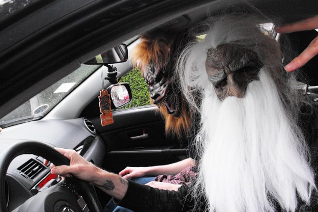Med vožnjo v cestnem prometu vozniki ne smejo nositi pustnih mask. Zakon o pravilih cestnega prometa (ZPrCP) v 35. členu namreč predpisuje, da voznik med vožnjo ne sme uporabljati opreme ali naprav na način, ki bi zmanjševal njegovo slušno ali vidno zaznavanje ali zmožnost obvladovanja vozila.