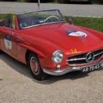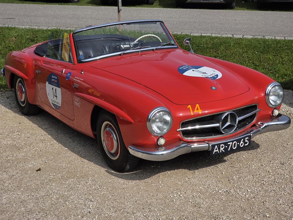 Model 190 SL (W121) je bil predstavljen leta 1954 kot dostopnejša različica legendarnega 300 SL »Gullwing«. S svojo nežno obliko, kromiranimi detajli in popolnim razmerjem med športnostjo ter udobjem je postal simbol povojne avtomobilske romantike. Skromen 1,9-litrski štirivaljnik vseh 105 konjskih moči preko štiristopenjskega ročnega menjalnika prenaša na zadnja kolesa. Najvišja hitrost je nastavljena na 175 km/h.