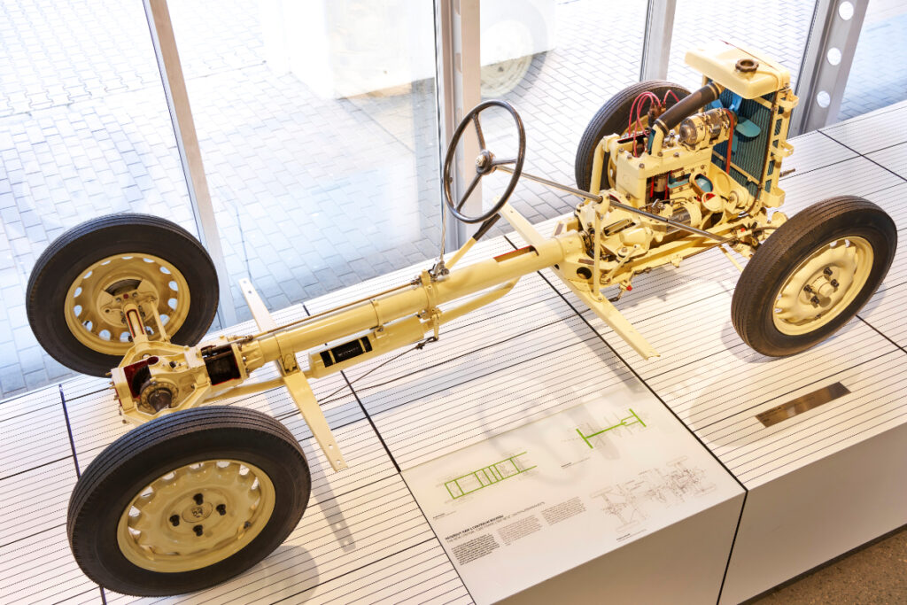 S tem so prikazali koncept veliko pred svojim časom in tako ostali konkurenčni še nadaljnjega pol stoletja. Tovrstna lahkotna zasnova iz jekla je imela modularne sposobnosti in so jo uporabili za dvo- ter osemvaljno gnane modele – Popular, Rapid, Superb, Octavia in Felicia. Do leta 1980 so podobno šasijo uporabljali kot osnovo turškega poltovornjaka Škoda 1202 Kamyonet. Škodina zgodba do naziva največjega češkega avtomobilskega proizvajalca se je začela že aprila leta 1929, čeprav za uradno rojstvo znamke beležijo leto 1936. Tradicija podjetja sega v leto 1895, ko so uspešno zagnali proizvodnjo v tovarni Mlada Boleslav. Sprva so iz sodobne proizvodne linije zapeljali modeli klasične zasnove z rebrastim okvirjem šasije in togimi osmi, od pomladi leta 1930 je osnovo ponudbe predstavljala štiri metre dolga Škoda 422, katere celotna šasija je tehtala približno 730 kilogramov.