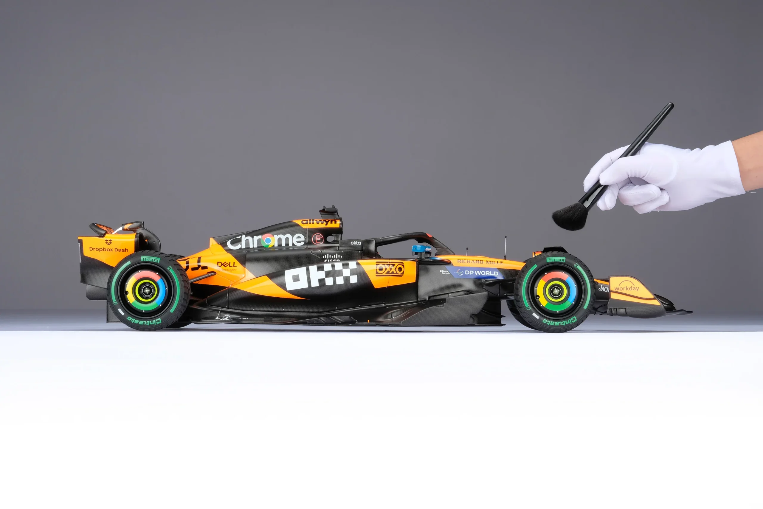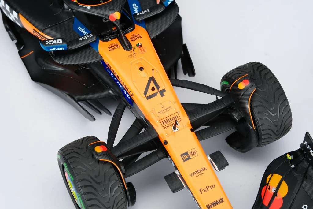 Najbolj prestižni kos predstavlja model MCL39 v merilu 1:8, ocenjen na 10.995 evrov. Maketa je dolga več kot 70 cm, sestavljena iz več tisoč natančno obdelanih komponent, izdelava vsake pa zahteva več kot 250 ur ročnega dela in dobrih 2.500 ur razvoja. Amalgam je model zasnoval na podlagi originalnih CAD podatkov ter uradnih barvnih specifikacij McLarena. Na voljo je 99 primerkov za Norrisa in 99 za Piastrija.
