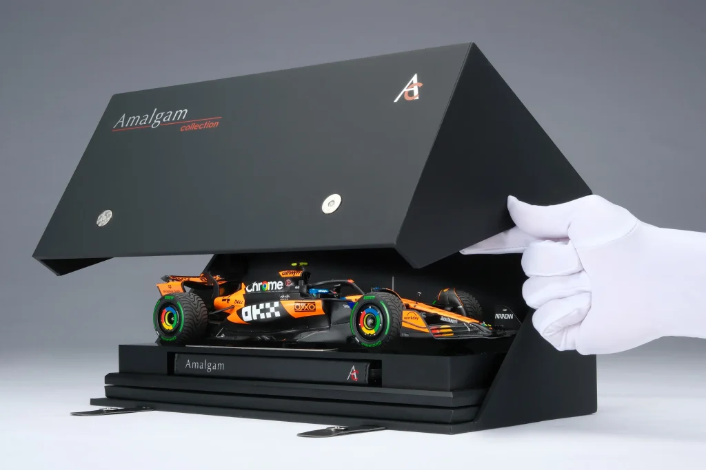 Za ljubitelje formule 1 in posebej privržence oranžne ekipe je Amalgamova nova trojica modelov pravcati praznik. Gre za tiste vrste izdelke, ob katerih se ti nehote zasvetijo oči, naj bo to ob maketi v merilu 1:8 ali ob volanu, ki bi ga najraje takoj priključil kar na domači simulator. Ni poceni, daleč od tega, a Amalgam nikoli ni igral v tem razredu. Kupci teh kosov ne iščejo le modela, temveč del zgodbe, ujet v popolno miniaturno formo.