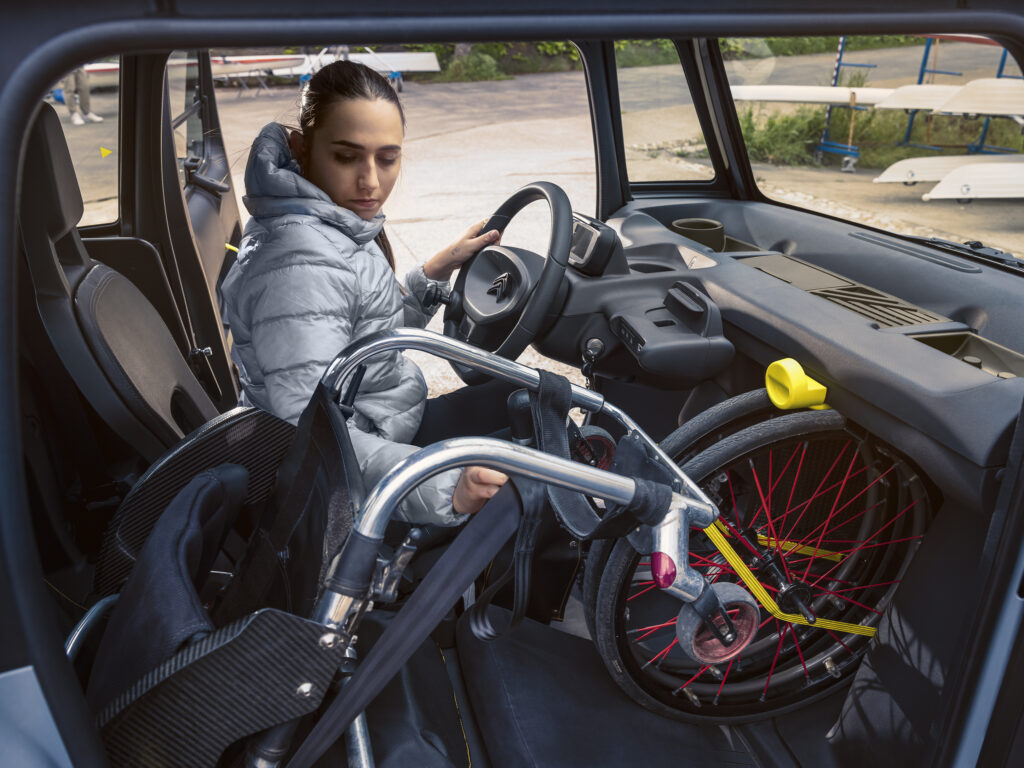 Invalidski voziček je možno prevažati na dva načina. Namestiti ga je možno v potniško kabino, v predel sovoznikovega sedeža, kjer je na voljo zelo velik prostor za shranjevanje. V tem primeru mora voznik z invalidskega vozička odstraniti kolesi in ju s posebnim pasom pritrditi v prostor za noge. Kolesi se idealno prilegata v ta prostor za shranjevanje. Zložen invalidski voziček pa nato položi na sovoznikov sedež. V tem položaju ga pritrdi s posebnim dodatnim varnostnim pasom. Takšna razporeditev omogoča invalidnemu vozniku povsem samostojno vožnjo.