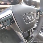 Moderno in privlačno zunanje oblikovanje opredeljujejo postavne linije z značilnimi Audijevimi elementi, zanimiva paleta karoserijskih barv in aerodinamična platišča s premerom od 19- do 21-palcev. Sprednji del dominira zablendirana maska, agresivne stranske reže in žarometa z LED matrično ali lasersko tehnologijo. Ob doplačilu ga krasijo še dodatki iz ogljikovih vlaken.