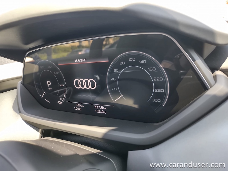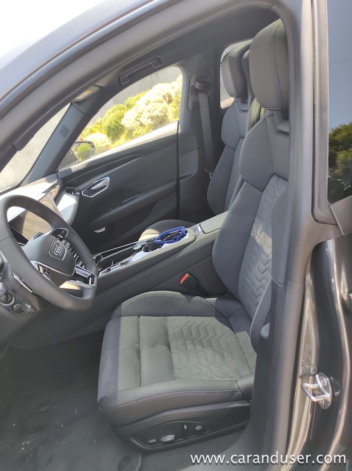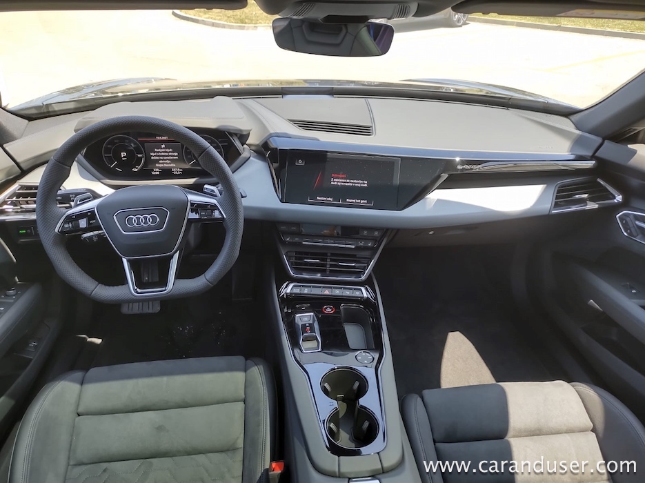 V notranjosti se od novodobnih Audi modelov bistveno ne razlikuje, voznikovo območje zastopa 12,3-palčni virtualni kokpit, na sredini se mu pridružuje 10,1-palčni informacijski zaslon, neroden digitalni zaslon za upravljanje klimatske naprave so zamenjali tradicionalni gumbi. Prostor zadnjih potnikov so povečali s poglobitvijo dna, kar omogoča rolkasta struktura baterije. Vse skupaj je lahko odeto v usnje, vendar Audi spodbuja bolj naravno izbiro iz recikliranih materialov.