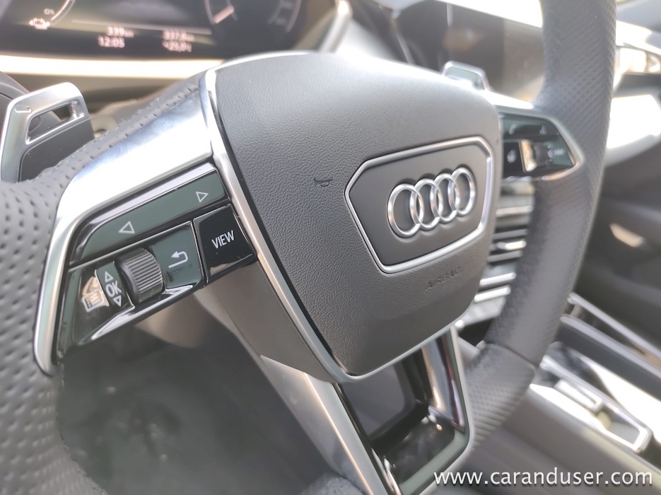 Moderno in privlačno zunanje oblikovanje opredeljujejo postavne linije z značilnimi Audijevimi elementi, zanimiva paleta karoserijskih barv in aerodinamična platišča s premerom od 19- do 21-palcev. Sprednji del dominira zablendirana maska, agresivne stranske reže in žarometa z LED matrično ali lasersko tehnologijo. Ob doplačilu ga krasijo še dodatki iz ogljikovih vlaken.