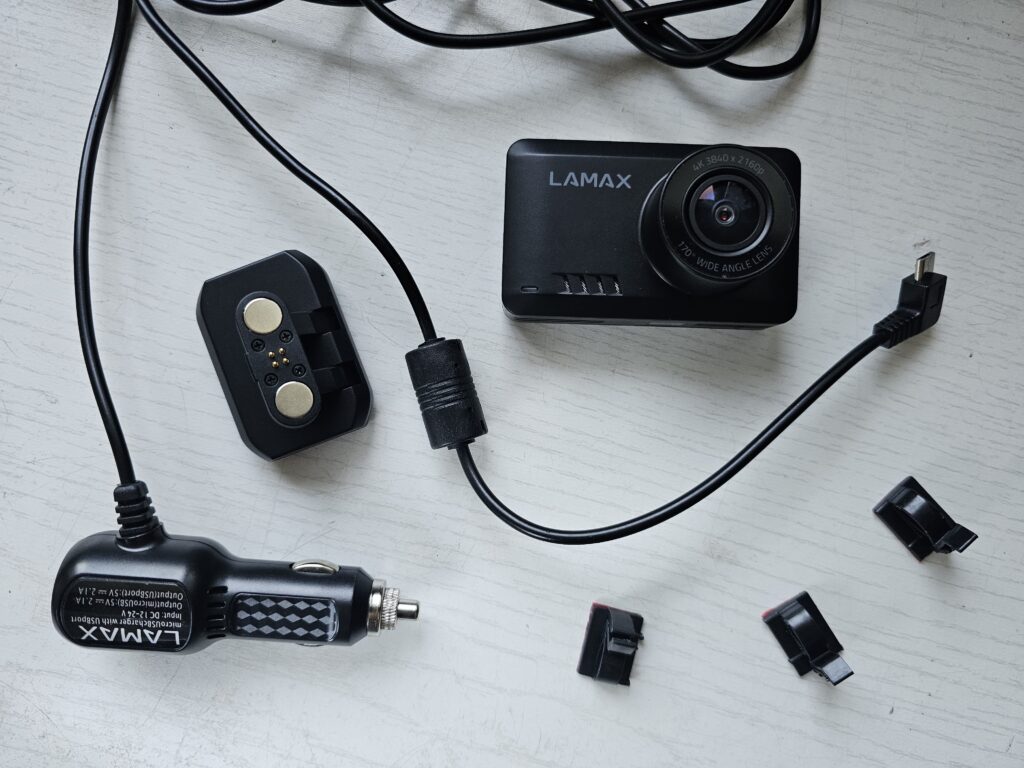 Pravzaprav vas vse kar potrebujete pričaka v lično zapakiranem paketu. V njem boste prejeli avto kamero Lamax T10, magnetno držalo s 3M nalepko in z GPS sprejemnikom, avtomobilski 12-voltni adapter z dodatnim USB vhodom, čitalnik microSD spominskih kartic za prenos datotek na računalnik, tri držala s 3M nalepko za pritrditev napajalnega kabla in še nadomestno 3M nalepko za držalo. Ne smemo pozabiti niti plastičnega pripomočka za varen odmik oblazinjenja vozila na stropu in stebričkih, da lahko kabel varno skrijete.