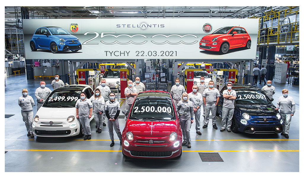 V tovarni skupine Stellantis v Tychyju na Poljskem so proizvedli 2,5 milijona vozil Fiat 500. Rekordni model, ki ga je naročil kupec iz Francije, je 500 Hybrid, opremljen z 51-kilovatnim (70 KM) mikro hibridnim motorjem. Leta 2020 sta 500 Hybrid in Panda Hybrid, skupaj z Lancio Ypsilon Hybrid, dosegla 110.000 prodanih primerkov. Od lansiranja do danes pa so vseh treh modelov prodali več kot 155.000.