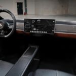 Notranjost električnega kupeja je pričakovano minimalistična, brez kakršnih gumbov in ogromnim sredinskim zaslonom, privlačna podrobnost so usnjeni trakovi namesto kljuk vrat. Zadaj bo nameščena kompaktna potniška klop, ki pa bo zaradi pomanjkanja prostora bolj služila kot odložišče nakupovalnih vrečk.