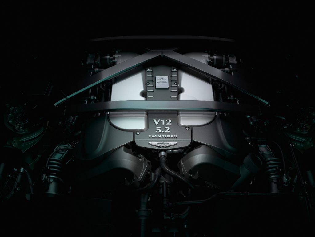 Za kateri V12 motor so se odločili ni presenečenje, gre za poznano 5,2-litrsko twin-turbo enoto, kakršno uporabljata večji DB11 in DBS Superleggera. Pod okriljem V12 Vantage je motor ugašen na 700 KM in 753 Nm navora, kar zadošča za pospešek do stotice v vsega 3,5 sekundah in doseg najvišje hitrosti 322 km/h. Drastično hitrejši od cenejšega V8 Vantage ni, ga pa spremlja precej prijetnejša simfonija dvanajstih valjev.