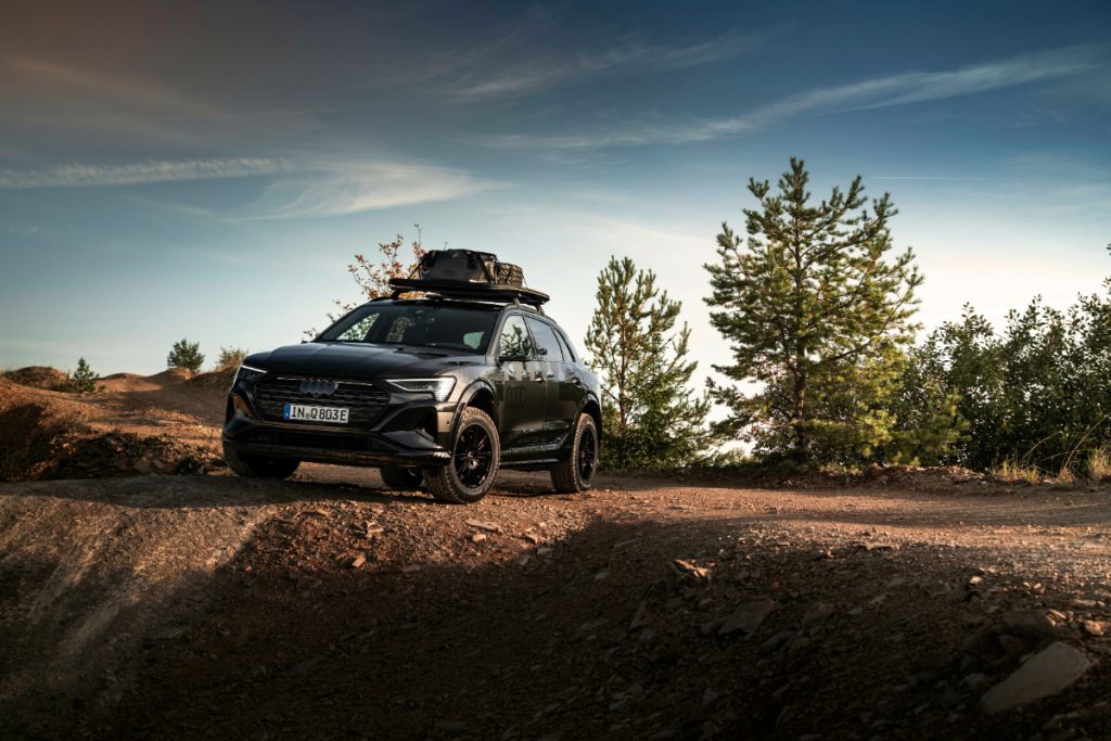 Dakarsko obarvani Audi Q8 e-tron temelji na različici advanced 55 e-tron quattro, opremljeni z baterijo s kapaciteto 106 kWh, ki s parom elektromotorjev zagotavlja največjo moč 300 kW (408 KM) in 664 Nm navora, kar zadošča za pospešek do stotice v 5,8 sekunde. Z enim polnjenjem lahko uporabniki po merjenju WLTP prevozijo do 487 kilometrov. Zavoljo dodatnih izboljšav pa je tovrstni Q8 t-tron odlično pripravljen za izlete izven urejenih cest. Pohvali se z 31 mm višjo oddaljenost od tal in terenskimi pnevmatikami General Grabber AT3 za večji oprijem v vseh razmerah. Zračno vzmetenje se prilagaja glede na hitrost in zagotavlja optimalno stabilnost.