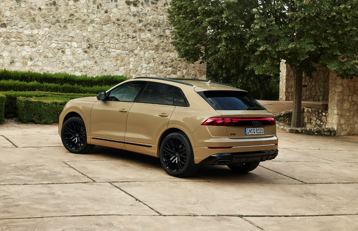 Pomlajena zunanja podoba poudarja njegovo športno in elegantno naravo, saj ga odlikujejo čiste linije, velike površine in natančno definirani proporci. Značilna osmerokotna sprednja maska z enojnim okvirjem ima sedaj pokončne elemente, ki se razlikujejo glede na stopnjo opreme. Osnovni model, zunanji paket S line in SQ8 imajo vsak svoje značilne oblikovne poteze, kot so kontrastne barve na zaščiti podvozja in vratnih nastavkih. Pomembna pridobitev ob prenovi so HD matrični LED žarometi z laserskim dolgim snopom svetlobe, ki zagotavljajo večjo svetlobno učinkovitost in vidljivost. Zadek se ponaša z rahlimi popravki in novimi OLED digitalnimi lučmi, katerih svetlobni podpis je mogoče prilagajati po želji. Paleto opreme so vsekakor okrepili z novimi odtenki karoserijskih barv, različnimi okrasnimi elementi in platišči premera 21 do 23 palcev.
