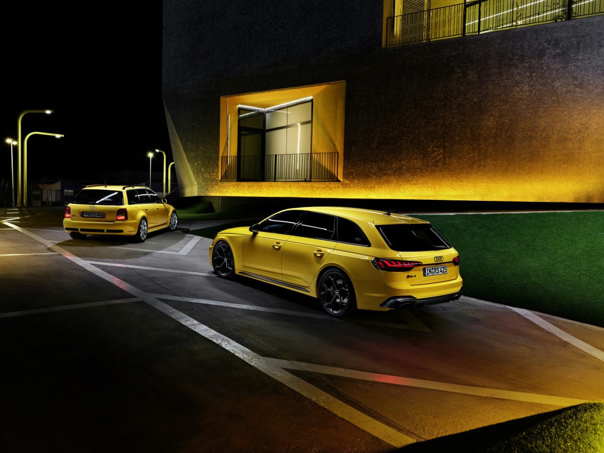 V devetdesetih letih prejšnjega stoletja je Audi z modeloma Avant RS2 in S6 plus postal pionir koncepta športnega karavana. Prvi model RS podjetja quattro GmbH (zdaj Audi Sport GmbH) je bil RS4 Avant generacije B5 iz leta 1999. Ponašal se je z razširjeno karoserijo in 2,7-litrskim biturbo šestvaljnim motorjem, ki je s Cosworthovo pomočjo proizvedel 280 kW (380 KM). RS4 Sport, predstavljen leta 2001, je bil najmogočnejša različica te generacije, opremljena z nižjim vzmetenjem, školjkastimi sedeži, športnim izpuhom in volanom odetim v semiš, kar odraža tudi nova posebna izdaja RS 4 Avant 25 let.