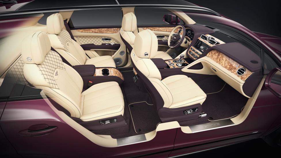 Srečen tisoči izdelek je precej vijoličasta Bentayga, z umetelno izdelano notranjostjo. Kupec iz Evrope si je zaželel okrasne elemente v notranjosti izdelane iz Olive Ash lesa, katerega je v kabini v izobilju – na armaturni plošči, vratih in sredinski konzoli. Notranji ambient dopolnjuje kremno oblazinjenje z dvojnimi kontrastnimi vijoličnimi šivi.
