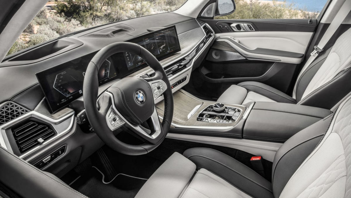 Velika sprememba se je odvila v notranjosti, kjer nas pozdravi moderen ukrivljen zaslon z 12,3-palčnimi digitalnimi merilniki in 14,9-palčnim osrednjim informacijskim zaslonom. Žene ju najnovejša programska oprema iDrive 8, ki podpira hitrejše posodabljanje, brezžično povezovanje s storitvama Apple CarPlay in Android Auto, na seznam standardne opreme je X7 pridobil tudi brezžično polnilnico mobilnih naprav.