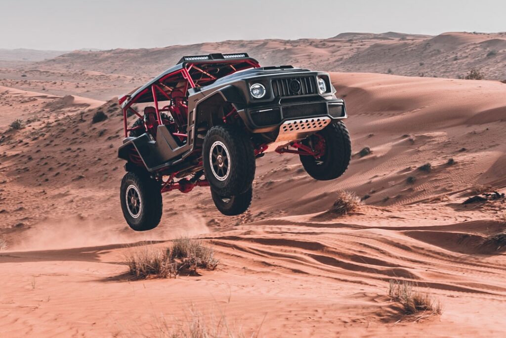 Kabina, kolikor je je ostalo, sprejme štiri potnike, sedeč na školjkastih Recaro sedežih, odetih v živo rdečo Silvertex tkanino – večinoma uporabljena pri plovilih. Od donatorskega Mercedesa razred G sta praktično ohranjena le armaturna plošča z dvema zaslonoma in volan, dodali so še tretji zaslon z GPS-vodeno navigacijo, za varnejše dirjanje po puščavskih sipinah.