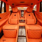 Največ bolečine v očeh bo predstavljala preoblečena notranjost, ki namesto sproščujočega bež usnja, svojo prestižnost razkazuje v oranžnem odtenku. Obenem so sproščujoče lesene okrasne površine nadomestile takšne iz ogljikovih vlaken. Med posebnostmi je nova zadnja sredinska konzola, kjer se skrivata dve zložljivi mizici, ravno prav za premožne poslovneže na listi kupcev.