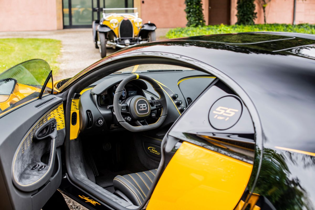 Model Type 55 Super Sport, omejen na le 38 primerkov, je redek in zelo zaželen zbirateljski avtomobil. Njegova zapuščina je navdihnila kupca Chirona Super Sport in Bugattijevo ekipo Sur Mesure, da sta ustvarila naročilo “55 1 od 1”, s katerim sta se poklonila prelomnim stvaritvam Jeana Bugattija. Jascha Straub, vodja podjetja Sur Mesure, je v sodelovanju s stranko in Bugattijevim dubajskim partnerjem v sodobni Chiron Super Sport vnesel bistvo tipa 55. Ponaša se z znamenito črno-rumeno karoserijo, dodatno ga krasijo oblikovni elementi, kot so črna sredinsk linija, maska s črno obrobo osrednjega dovoda zraka in elegantno rumeno linijo, ki se od zadka pretaka do blatnikov.