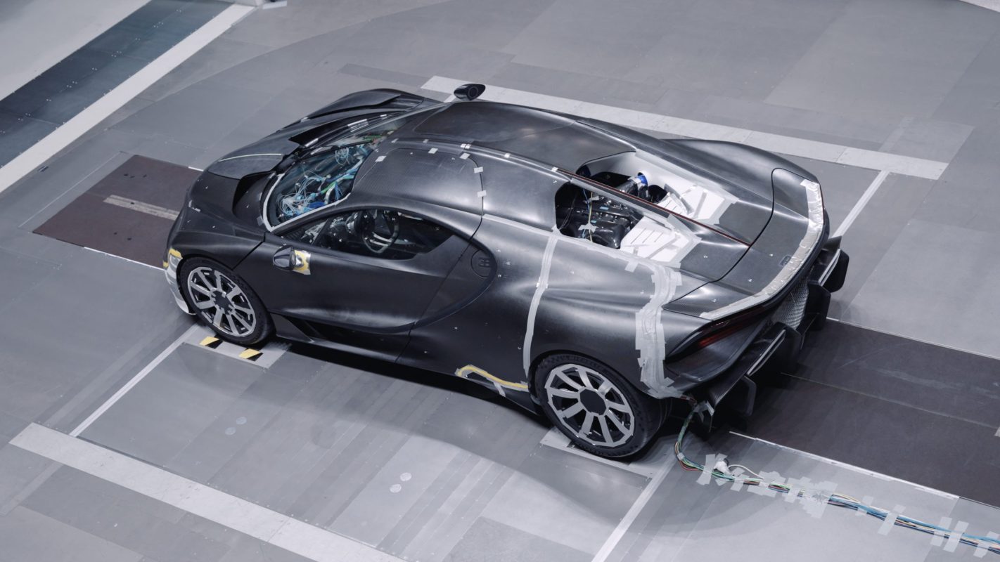 Proces oblikovanja je obsegal večmesečne simulacije računalniške dinamike tekočin, ki so inženirjem omogočile zgodnje razumevanje dinamike zračnega toka. Petnajst mesecev pred javno premiero so se Bugattijevi inženirji in aerodinamiki zbrali v Italiji, da bi v vetrovniku preizkusili skrbno izdelan model Tourbillona v polovičnem merilu. Model izdelan iz 250 3D-tiskanih sestavnih delov in z več kot 100 tlačnimi pipami, je omogočal natančne meritve masnega pretoka, statičnega tlaka in hitrosti zraka na površini avtomobila.