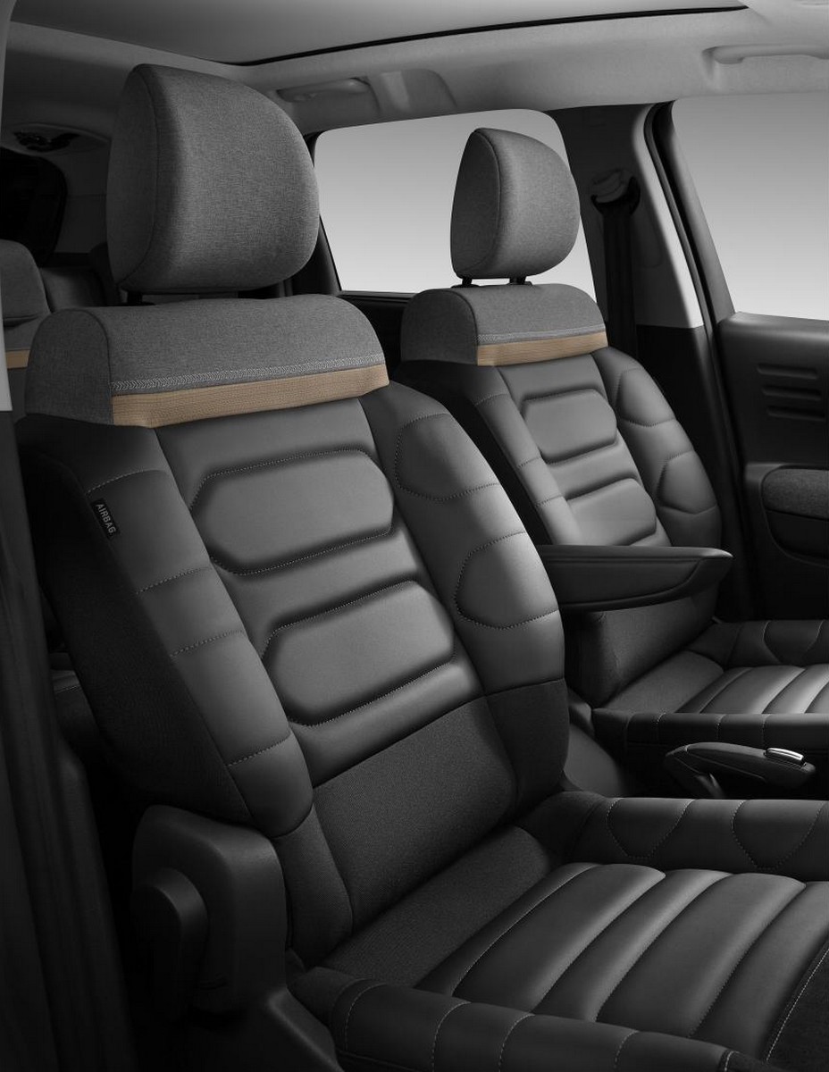 Kljub drznemu videzu, udobje notranjosti ni nastradalo, z novimi Advanced Comfort sedeži iz večjega C5 Aircross, je situacija ravno obratna. Z dodatnih 15 mm oblazinjenja vsekakor izgledajo vabljivo. Ohranili so osnovno razporeditev kabine, z izbiro treh novih stilov okrasnih elementov, standardno ostaja oblazinjenje iz blaga, z doplačilom iz umetnega ali naravnega usnja.