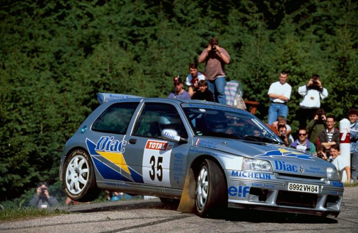 Clio se je lotil tudi relijev in na asfaltu v državnih prvenstvih skupine A kmalu dosegal čudeže. V letu 1995 je Clio Maxi tekmoval v razredu Kit-Car. Tega na fotografiji vozi žal že preminuli Philippe Bugalski. Ta večkratni francoski prvak je maja 1993 s Cliom Williams nastopil na reliju Saturnus v Sloveniji, ko je ta štel za evropsko prvenstvo.