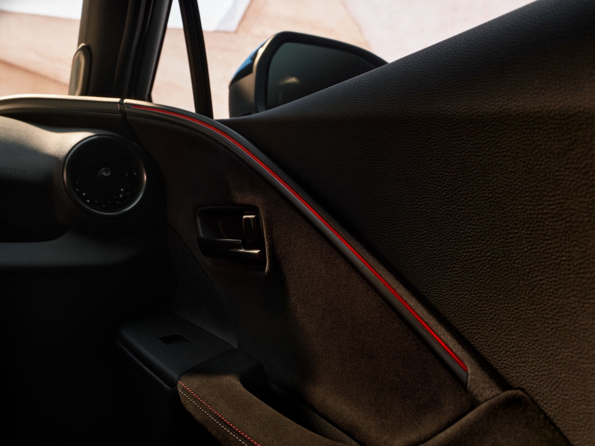Pogled v notranjost novega C-HR razkriva pričakovano nadaljevanje atraktivne zasnove in izboljšano kakovost trajnostnih materialov. Večja je osredotočenost na voznika s skoraj ločenim kokpitom, katerega sestavljajo 12,3-palčni digitalni merilniki in 12,3-palčni osrednji zaslon na dotik. Pohvalimo lahko ločeno enoto za upravljanje klimatske naprave, ki se nahaja nad sredinsko konzolo z manjšo ročico izbirnika smeri vožnje, ki z manjšim mostičkom ločena od sovoznika. Sodobnejši operacijski sistem omogoča povezljivost s priljubljenima storitvama Apple CarPlay in Android Auto, za prijetno vzdušje pa poskrbi ambientalna osvetlitev s 64 barvami.