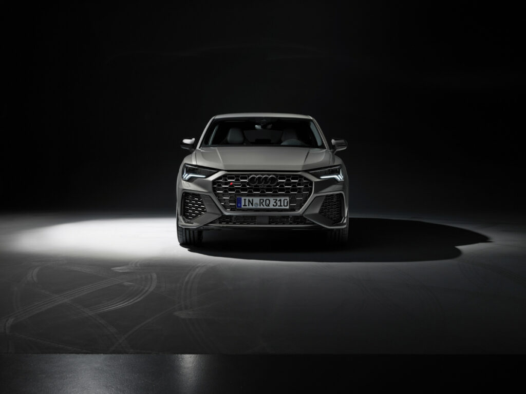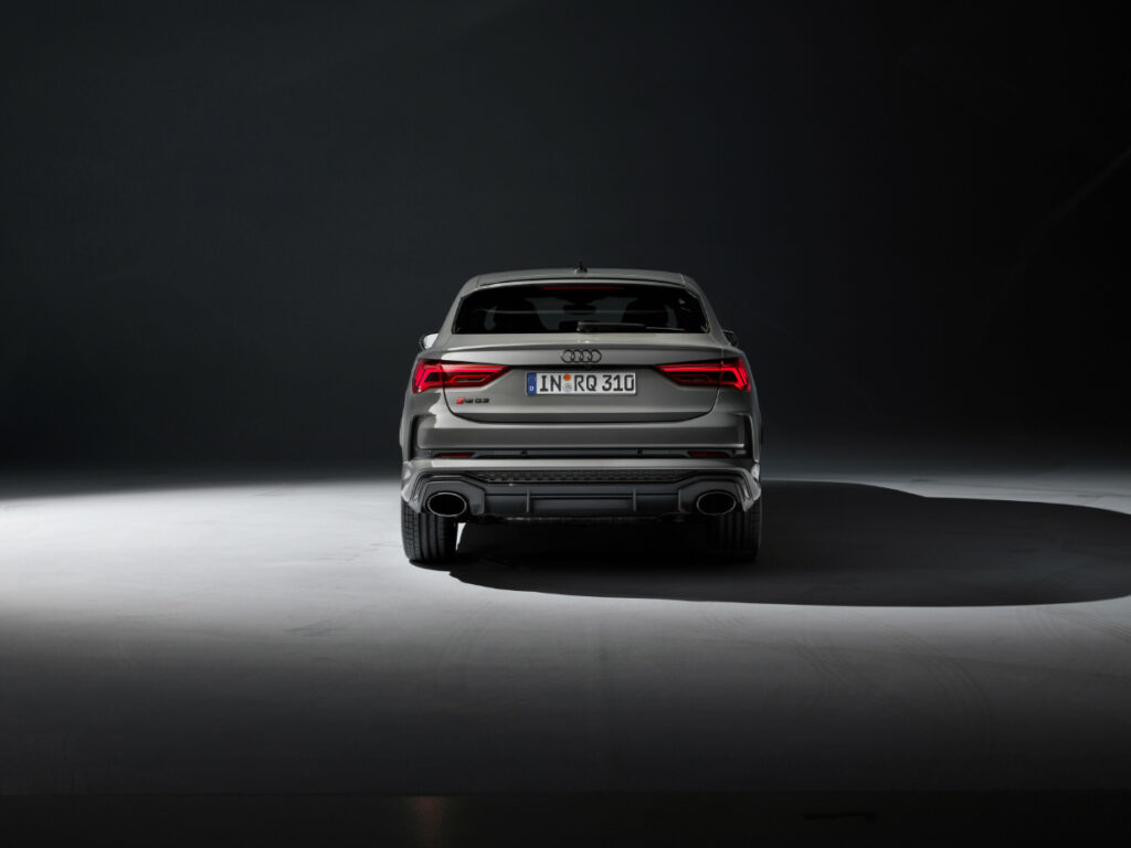 Kljub imenitnem opisu z Audijeve strani, gre praktično za RS Q3 s paketom črnih okrasnih dodatkov in nekaj manjšimi popravki. Na zunaj se pohvali s črnimi 21-pačnimi platišči, črnimi obrobami oken, črnima vzvratnima ogledaloma, prav tako se črnina razteza na zadnji difuzor, prednji odbijač in Audijeve logotipe. Nekoliko zatemnjena sta sprednja LED žarometa, za kontrast pa poskrbita dve svetlejši karoserijski barvi – Dew srebrna in Chronos kovinsko siva.