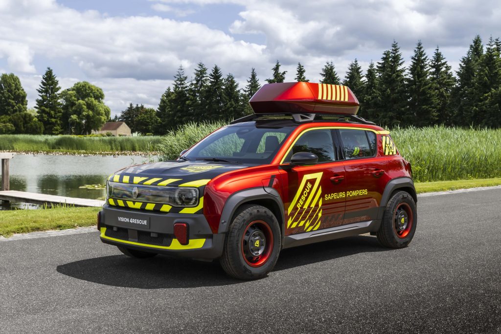 Renault 4 je bil tudi v svoji pred-električni dobi znan kot multipraktik, ki smo ga lahko svoj čas srečali tako kot policijski ali kot reševalni avtomobil, sodobna študija Vision 4Rescue pa je bila zamišljena kot visokotehnološko pomožno vozilo gasilcev s številnimi funkcijami. Velik zaboj na strehi tako ni namenjen shranjevanju gasilskih cevi, kot bi morda pričakovali, temveč je v njem nameščen diagnostični dron ter antene in druga oprema za obnovo komunikacijskih omrežij ob nesreči.