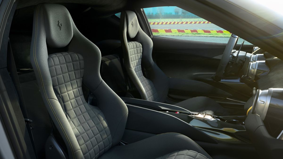 Na fotografijah nemudoma opazimo obsežno spremembo zunanjega oblikovanja z izdatnimi aerodinamičnimi izboljšavami, za povečan potisk k tlom. Preoblikovani so sprednji zajemi zraka, čez pokrov motorja se razteza karbonska plošča, zadnji blatniki imajo dodatne zračne zareze, nova sta seveda še zadnji difuzor in zaključek izpušnih cevi. Zadnje steklo je nadomestil aluminijast pokrov z zarezami, s katerimi so dodatno povečali učinkovitost aerodinamike, obenem izgledajo izredno privlačno. V notranjosti ostaja bolj kot ne enak kot običajen 812 SF, z izjemo lahkih panelov vrat in novega dizajna oblazinjenja sedežev.