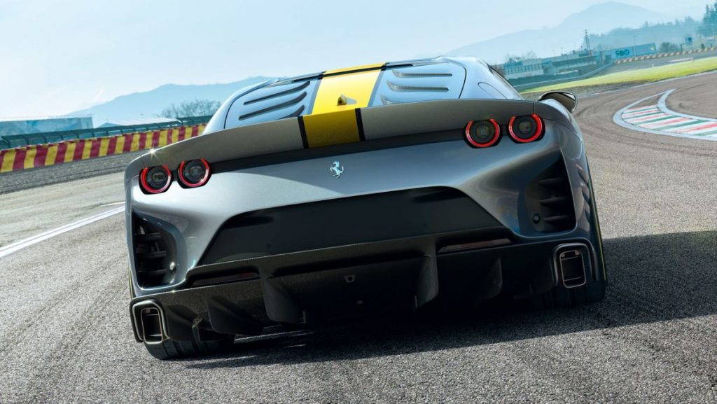 Na fotografijah nemudoma opazimo obsežno spremembo zunanjega oblikovanja z izdatnimi aerodinamičnimi izboljšavami, za povečan potisk k tlom. Preoblikovani so sprednji zajemi zraka, čez pokrov motorja se razteza karbonska plošča, zadnji blatniki imajo dodatne zračne zareze, nova sta seveda še zadnji difuzor in zaključek izpušnih cevi. Zadnje steklo je nadomestil aluminijast pokrov z zarezami, s katerimi so dodatno povečali učinkovitost aerodinamike, obenem izgledajo izredno privlačno. V notranjosti ostaja bolj kot ne enak kot običajen 812 SF, z izjemo lahkih panelov vrat in novega dizajna oblazinjenja sedežev.