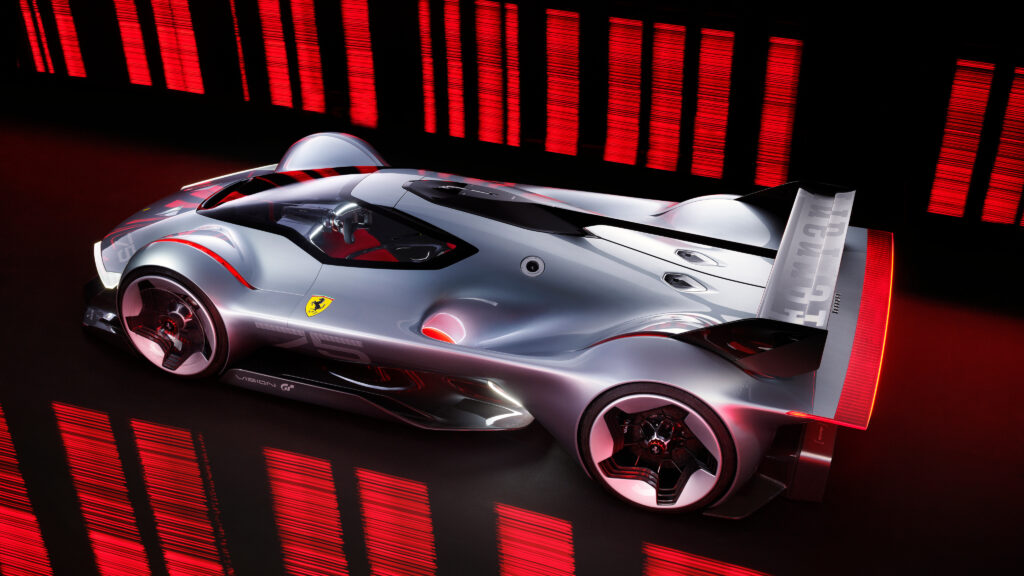 Ferrari z virtualnim Vision Gran Turismo predstavlja prvi avtomobil iz Maranella, zasnovan posebej za serijo videoiger Gran Turismo, s katerim uradno zaključujejo 75. obletnico premiere prvega dirkalnega modela 125 S leta 1947.
