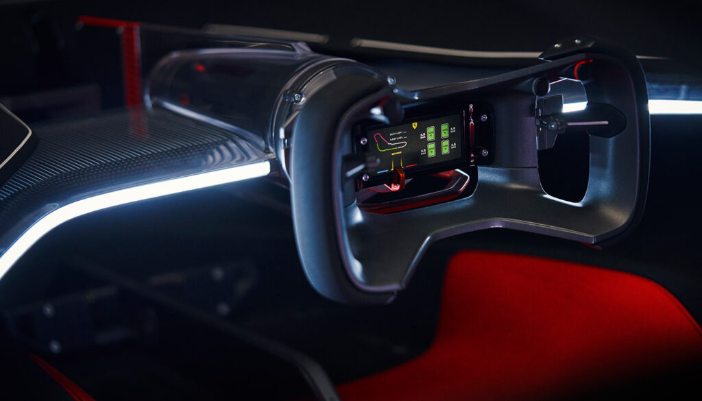 Ferrari z Vision Gran Turismo stopa v virtualni okolje, kjer bodo pritegnili nove generacije navdušencev, hkrati z novim modelom vpeljujejo svež oblikovalski jezik. Začrtali so ga v domačem oblikovalskem studiu pod taktirko Flavia Menzonija, navdih so našli kar pri znamenitih dirkalnikih iz šestdesetih in sedemdesetih letih prejšnjega stoletja.