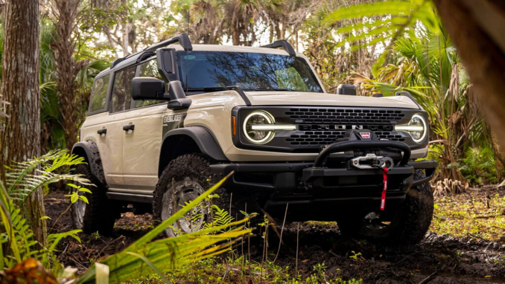 V primerjavi s standardnim Broncom, ki naj bi sicer prispel na evropski trg, se Everglades ponaša s številnimi nadgradnjami. Med najpomembnejše spadajo nova 17-palčna platišča obuta v oprijemljive Goodyear terenske pnevmatike, okrepljena jeklena zaščita dna vozila in močni stranski pragovi za zaščito pred udarci med plazenjem po skalovju. Za postavno pozo poskrbijo še širši kolesni loki, pomembni tudi pri vgradnji večjih pnevmatik, pod paket nadgradnje spada tudi odstranljiva streha s strešnim nosilcem.