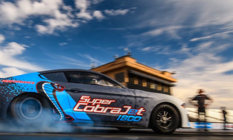 Ford Performance je danes predstavil nadaljnji razvoj svojih prizadevanj na področju motošporta na električni pogon z dirkalnikom Mustang Super Cobra Jet 1800, agresivno nadgradnjo modela Mustang Cobra Jet 1400, aktualnega svetovnega rekorderja največje organizacije za avtomobilske dirke na svetu NHRA (National Hot Rod Association). Z njim naj bi izboljšali svetovni rekord Cobre Jet 1400 za električna vozila s polno karoserijo na četrt milje (0,40 km), ki znaša 8,128 sekunde pri hitrosti 171,97 milje na uro (276,76 km/h).