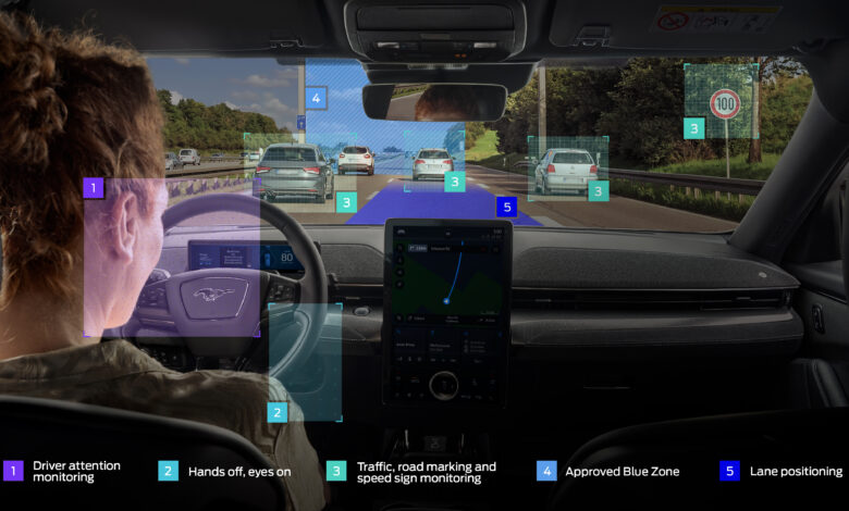 Celotna kampanja poteka pod sloganom »hands-off, eyes-on« (ang. roke stran, oči na peclje) in bo kupcem električnega Forda Mustanga Mach-E omogočila dokup sistema BlueCruise. Ta omogoča avtonomno spremljanje cestnih oznak, hitrostnih omejitev in spreminjajoče se prometne razmere da lahko nadalje upravlja krmiljenje, pospeševanje, zaviranje in menjavo ter sam položaj na izbranem voznem pasu. Hkrati vzdržuje varno razdaljo do vozil spredaj, tudi med gnečo oziroma zastoji.