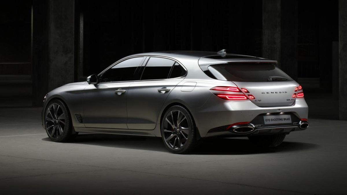 Privlačna in nadvse zanimiva karavanska oziroma »shooting brake« izpeljanka modela G70, v svoj segment prinaša nekaj svežine. Prvi dve tretjini sta praktično enaki limuzini, zadek pa definirajo pokončnejša prtljažna vrata, nekakšen plavajoč strešni spojler in značilna štiridelna LED osvetlitev, ki jo najdemo tudi spredaj. Pomembno je omeniti, da je Genesisov direktor oblikovanja Luc Donckerwolke, nekdanji vodilni dizajner pri Lamborghiniju in Bentleyu.
