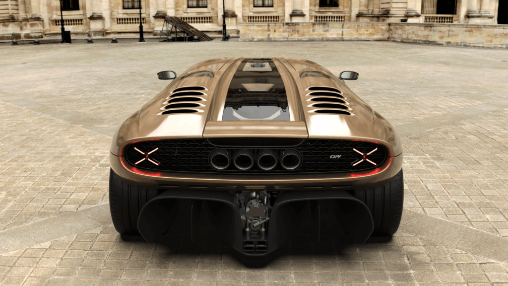 Zgornje površine modela GP1 so prava paša za oči, saj združujejo elemente iz zlatih časov oblikovanja. Čeprav ga je Angel Guerra, nekdanji sodelavec Bugattija in Rimaca, ustvaril iz nič, bodo mnogi avtomobilski navdušenci opazili različne vire navdiha. Med fazo oblikovanja so kupci in ambasadorji modela GP1 komentirali, da vidijo podobnosti z Lancio Stratos Zero, Countachom in številnih drugih Gandinijevih mojstrovin, vendar je to nedvomno njegova lastna kreacija, ki je moderna, a hkrati brezčasna.