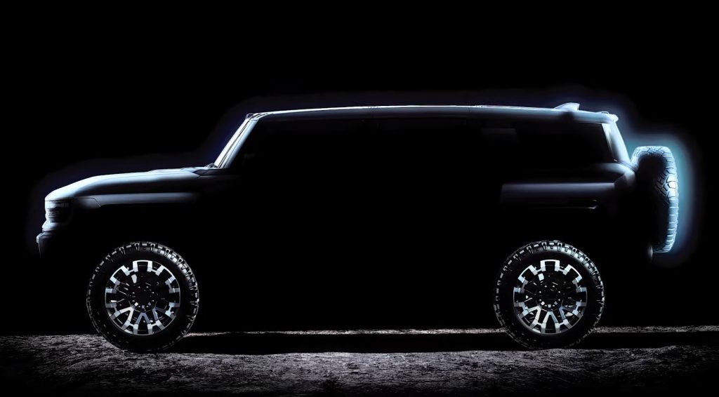 Zasenčena dražilna fotografija nam ponuja prvi vpogled v oblikovanje popolnoma električnega GMC Hummer SUV. Uradno razkritje bo doživel 3. aprila, predstavljal pa bo enako tehnologijo in oblikovne elemente kot pick-up izvedenka. Električno gnani Hummer SUV bo postal pomemben GMC-jev član v vztrajno rastočem in vse bolj popularnem segmentu ogromnih električnih terencev. Med že razkrite tekmece spadajo Rivian R1S, Tesla Cybertruck in Bollinger B1.