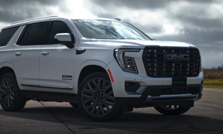 GMC Yukon je brat dvojček Chevroletovemu SUV-ju Tahoe, saj sta znamki pod streho istega koncerna – General Motors. Medtem ko Chevrolet izdeluje široko paleto vozil je GMC skoncentriran na terence, SUV-je in poltovornjake. Tu v igro pride GMC Yukon, ki v svoji najbolj petični podobi Denali Ultimate s cenikom preseže 100 tisočakov. Višje pač ne gre. Ko to obkljukate si lahko izberete še morda malce presenetljiv pogon – ali trilitrski Duramax turbodizelski agregat ali 6,2-litrski V8 bencinski kotel. Slednji s svojimi 426 KM in 624 Nm navora ne velja za podhranjenega, a pri Hennesseyju so seveda nasprotnega mnenja.