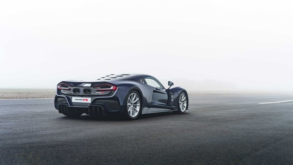 Vendar pri Hennesseyu zaenkrat še niso preverjali končne hitrosti, temveč so omenjene vožnje na Bohmer Proving Groundsu služile za umerjanje pogona in podvozja. Ko smo že pri tem, za realizacijo tako visokih hitrosti skrbi 6,6-litrski twin-turbo V8 agregat s kar 1.817 KM, katerih galopiranje je zanimivo speljano zgolj in le na zadnji kolesni par. Da so bila testiranja uspešna priča dejstvo, da je Venom F5 zaenkrat dosegel neskromnih 271,6 milj na uro oziroma 437 km/h.