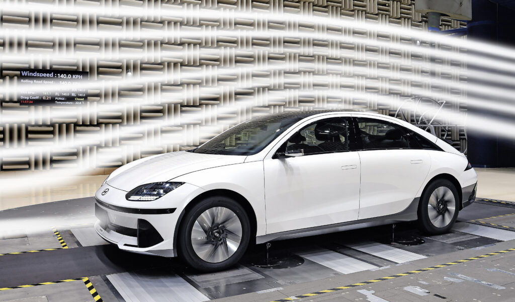 Zadnji testi v vetrovniku so pokazali, da ima Ioniq 6 impresivno nizek količnik zračnega upora le 0,21. Oblika vozila povzeta po tokovnici je po besedah Simona Loasbyja, šefa oblikovanja, navdihnjena po skoraj stoletje oddaljenih vozilih Stout Scarab, Phantom Corsair in Saab Ursaab. Zakoni fizike so že dlje časa potrjeni, le estetika se tekom let oziroma desetletij spreminja.