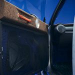 Kabina je osrčje sprememb, saj so odstranili vso nepotrebno kramo, a vseeno izgleda izredno elegantno in retro-futuristično. Izpostavljene elemente, kot so recimo vijaki, povzdigujejo materiali v petih različnih odtenkih. Z gumbi nasičen moderen volan je nadomestil unikaten trikrak, informacijski sistem so zamenjali z nosilcem pametnega telefona, celo notranjost vrat je nadomestila kovinska mreža. Vse zelo enostavno, temačno in modno.