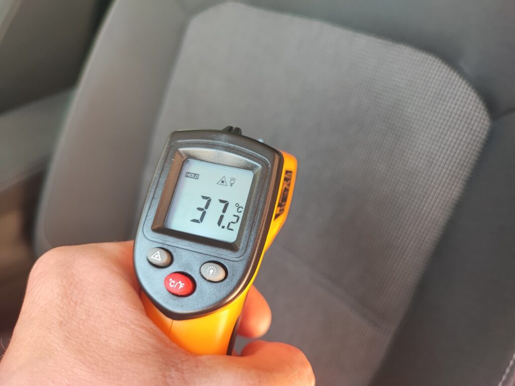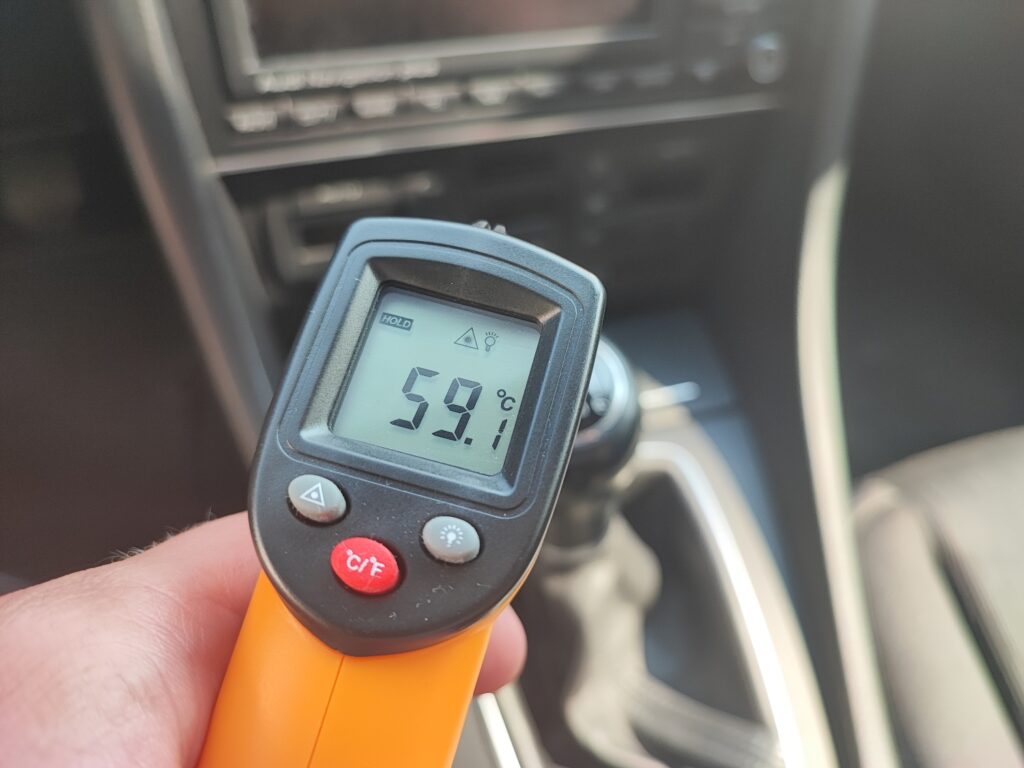 Klima je prostor od prejšnje meritve ohlajala 15 minut, kar je recimo čas povprečno namenjen hlajenju kabine pred odhodom na pot. Rezultati so bili zanimivi. Glede na konstantno izpostavljenost soncu, so bile pričakovane manjše razlike, a kot kaže, avtomobilske klime delujejo resnično impresivno – seveda če so pravilno vzdrževane, kar je priporočljivo, saj lahko takšne visoke temperature škodujejo zdravju.